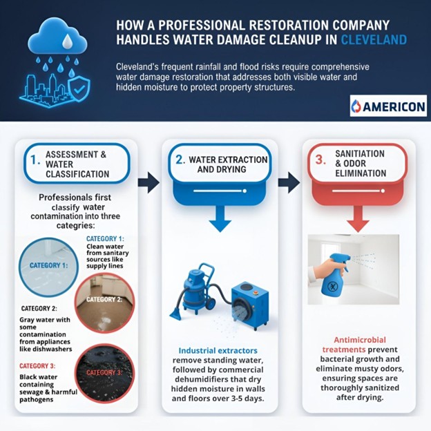 Here’s how a local restoration company in Cleveland like Americon handles such a situation: