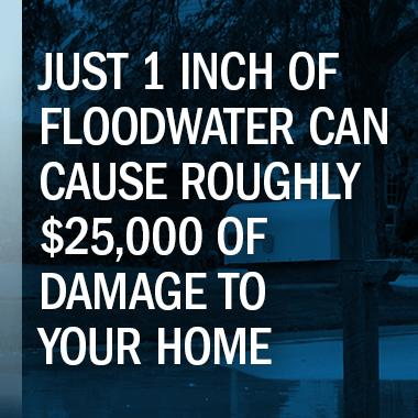 - One inch of floodwater can cause $25,000 of damage to your home.